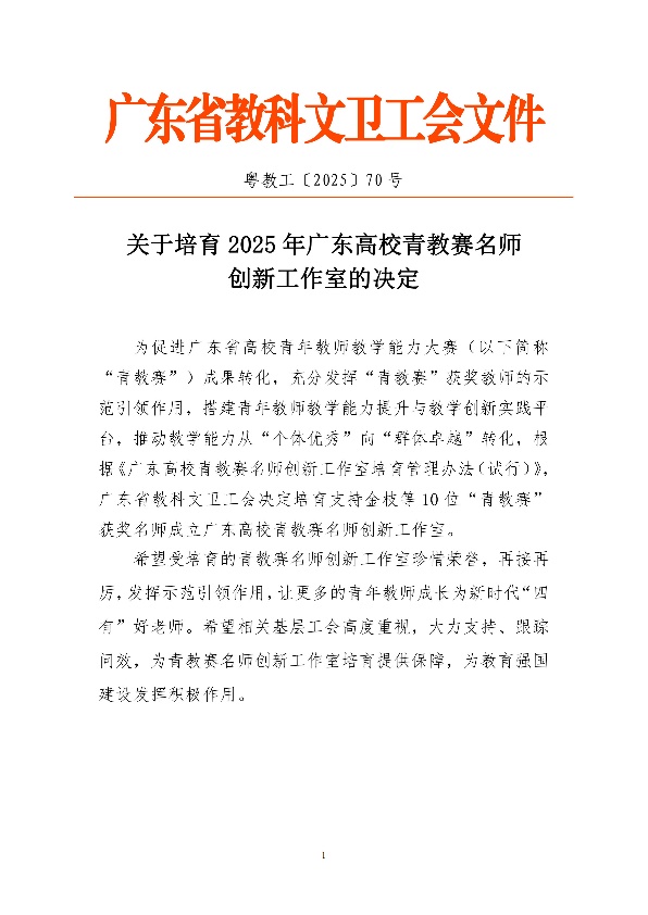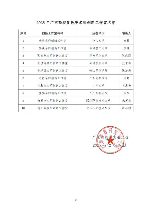 12月18日,广东省教科文卫工会公布决定,培育支持10位“青教赛”获奖名师成立广东高校青教赛名师创新工作室,我校张永刚名师创新工作室名列其中。