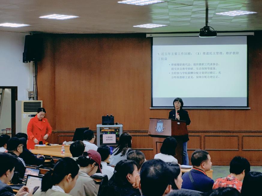 学院原部门工会主席阮傲作工作报告,全面回顾了上一届部门工会在学院党总支领导下的工作历程,从维护教职工权益、开展教工人文关怀活动、丰富教职工文体生活等方面,系统总结了任期内的工作成果与经验。大会审议并通过了上一届部门工会工作报告和经费收支情况报告。随后,学院全体工会会员严格遵循选举办法,以无记名投票的方式选举产生了新一届工会委员会委员,共7名委员当选。