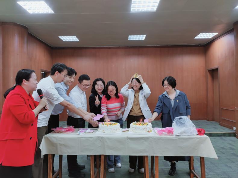 大会结束后,学院举办了下半年教职工集体生日会,现场的生日快乐歌传递着学院对教职工的关怀。全体参会人员共同为寿星们送上祝福,大家分享蛋糕、畅谈心声,在轻松愉快的氛围中感受着学院大家庭的温暖。