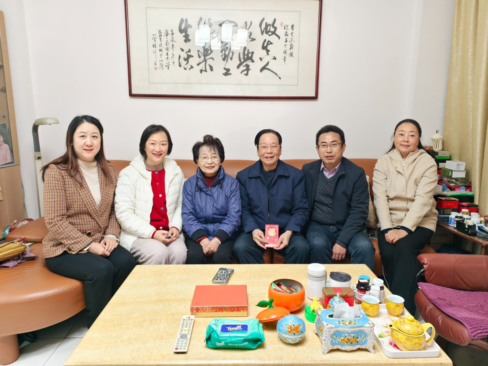 岁律更新,暖意满庭。2026年1月21日上午,教育信息技术学院部门工会开展了2026年新春慰问活动。学院党委书记赵红全、副书记向娟、部门工会主席李剑琴以及学院离退办何剑冰等一行人组成新春慰问队伍,到李克东、秦兆年等离退休教工代表家中进行慰问,为他们送去学院的关怀与诚挚的新春祝福。