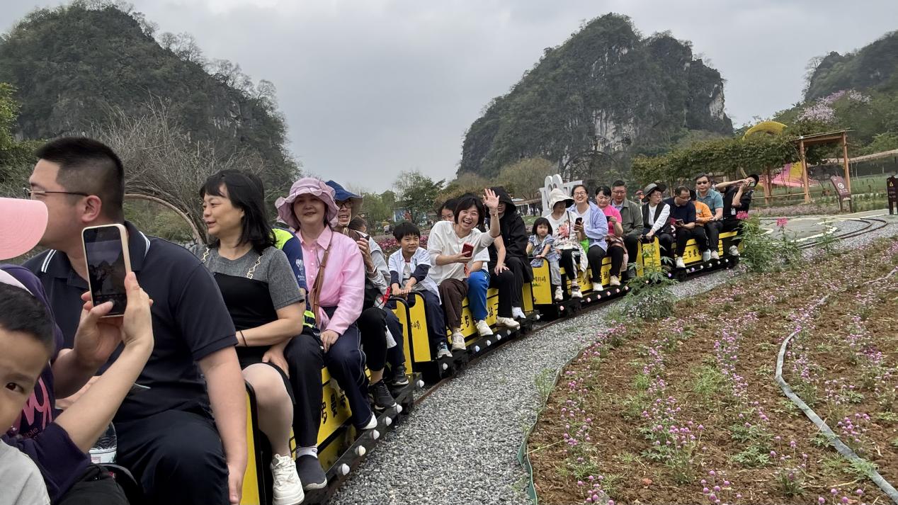 次日,队伍来到英德,探访宝晶宫溶洞。步入四层相叠的喀斯特奇观,龙王宝殿、玉皇宝殿气势恢宏,石笋、石幔千姿百态,令人叹为观止。随后,大家前往峰林小镇,乘坐网红蒸汽小火车穿行于英西峰林核心段,青山如黛,碧水如练,人在画中游,心随景自远。