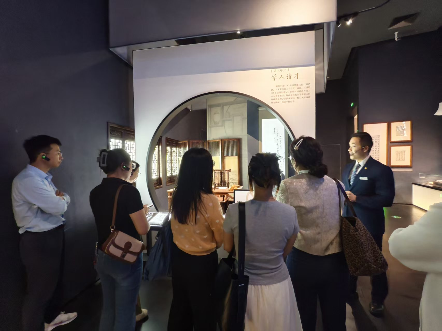 欣赏完三江美景,大家来到白鹅潭大湾区艺术中心的广东文学馆与广东省非物质文化遗产馆参观,品广东文学精粹,赏岭南非遗艺术精品,沉浸式感受湾区文化底蕴。