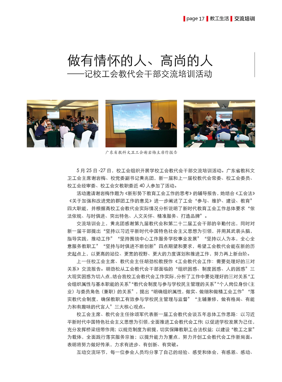 做有情怀的人、高尚的人——记校工会教代会干部交流培训活动