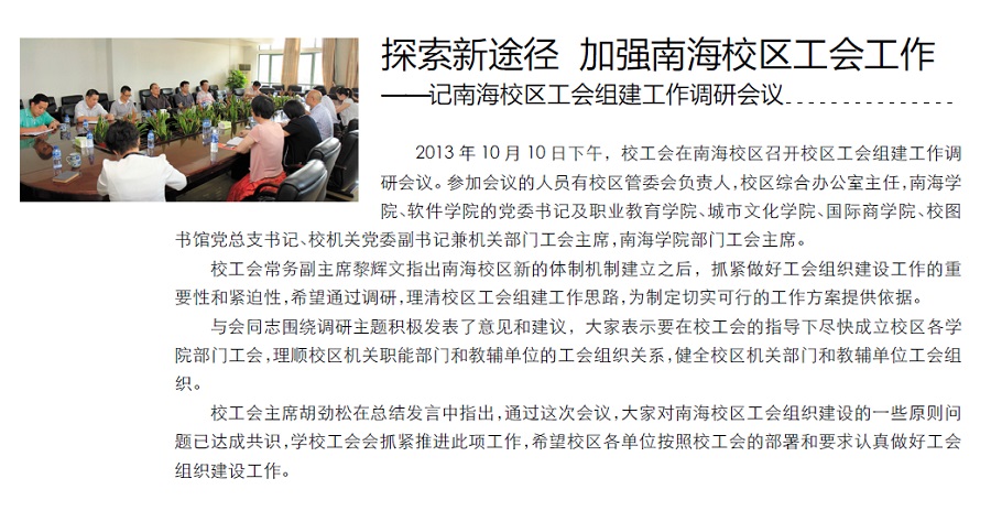 探索新途径 加强南海校区工会工作——记南海校区工会组建工作调研会议