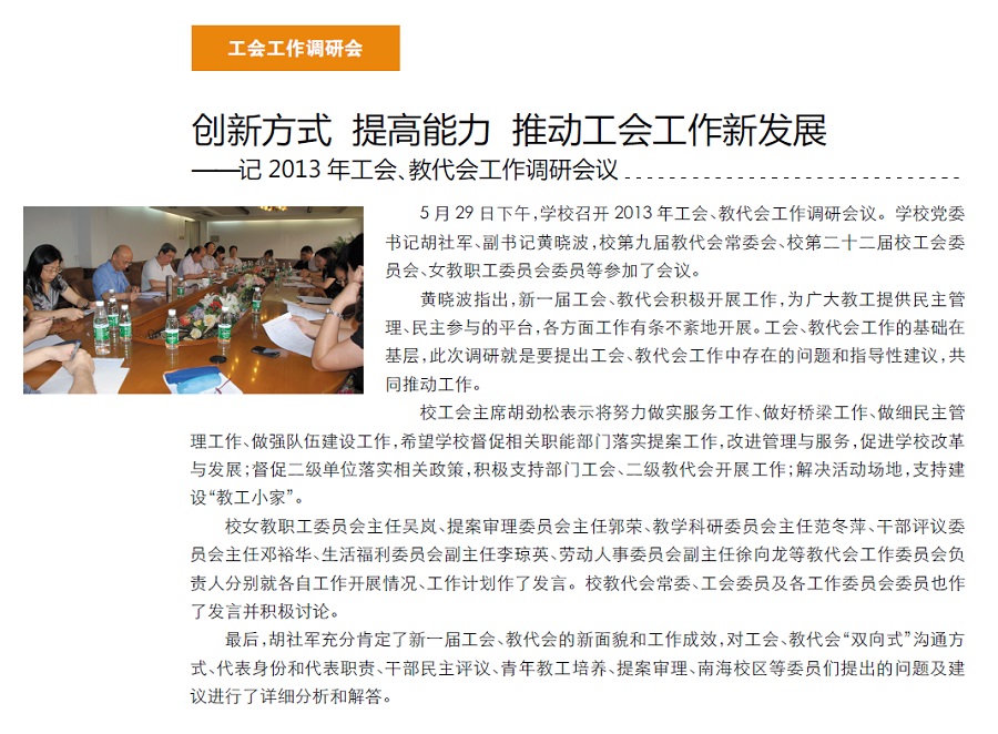 > 创新方式 提高能力 推动工会工作新发展——记 2013年工会、教代会工作调研会议