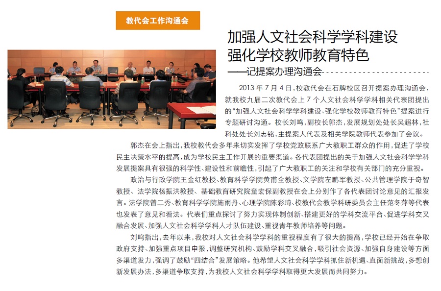 加强人文社会科学学科建设 强化学校教师教育特色——记提案办理沟通会