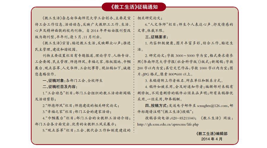 > 《教工生活》征稿通知